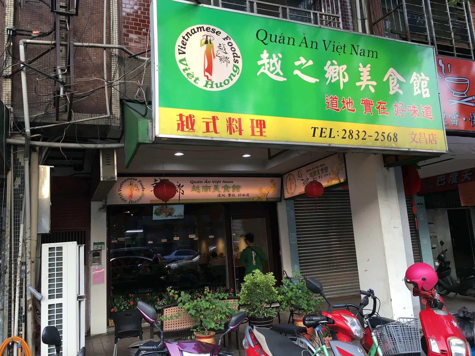 騎車來的直接停門口,開車來的若馬路二旁無空的停車格,可以停新光醫院收費停車場,每次50元。越鄉越南美食館的綠色招牌,位於一排公寓中間不算特別顯眼。